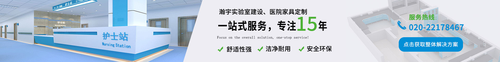 廣州瀚宇公司成立于2010年,是一家專業從事實驗設備及醫院家具設備設計,生產、安裝、銷售、售后服務于一體的綜合性企業。本公司生產 的家具設備分為全鋼結構、鋼木結構和全木結構三大系列,主要是醫療空間系統功能性臺柜(如導診臺、護士站、醫用診臺、治療臺、處置臺、配 藥臺、抽血臺、污物臺、洗嬰臺、霧化臺、收費掛號臺等產品。